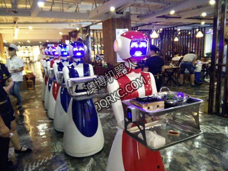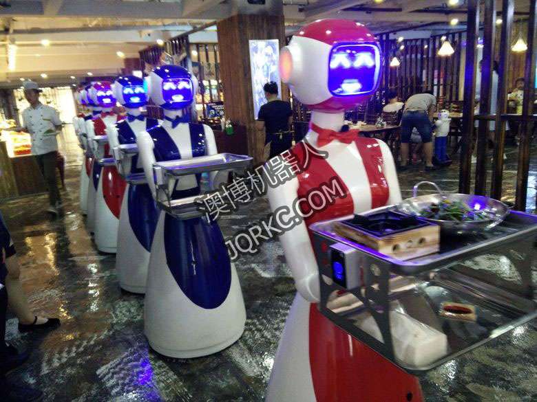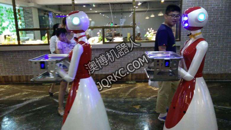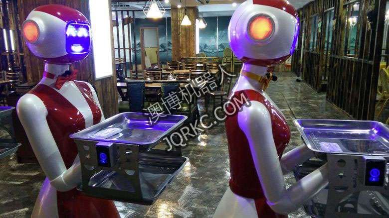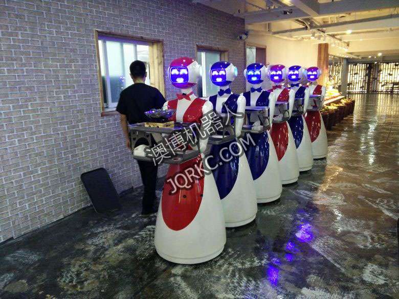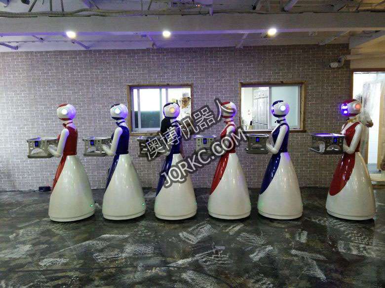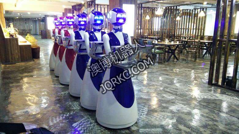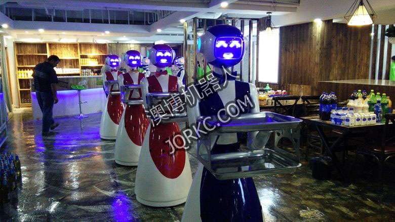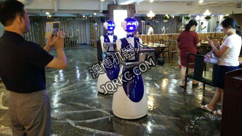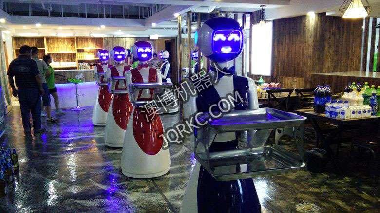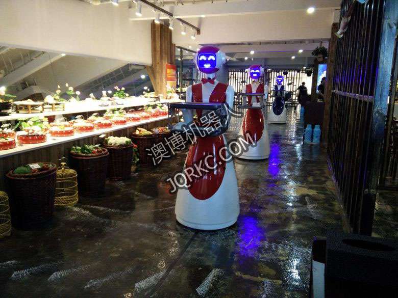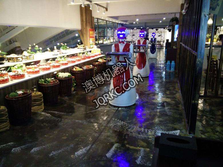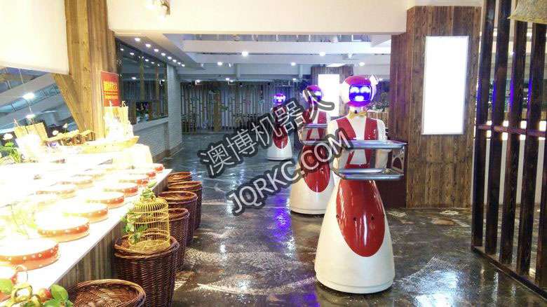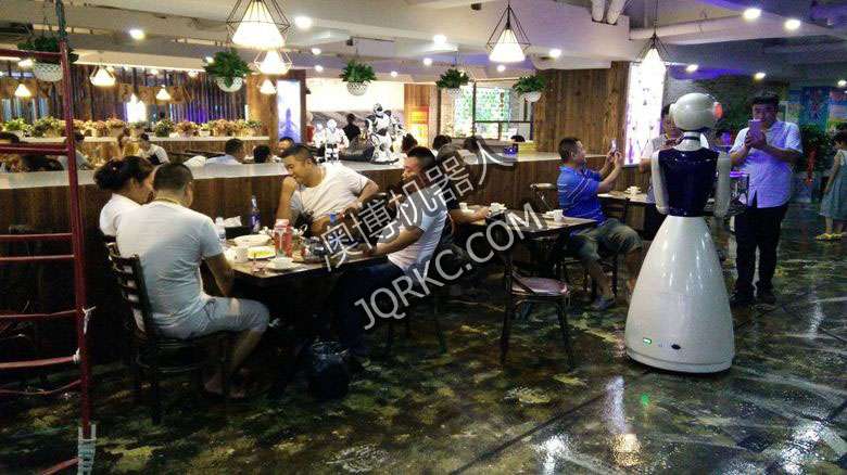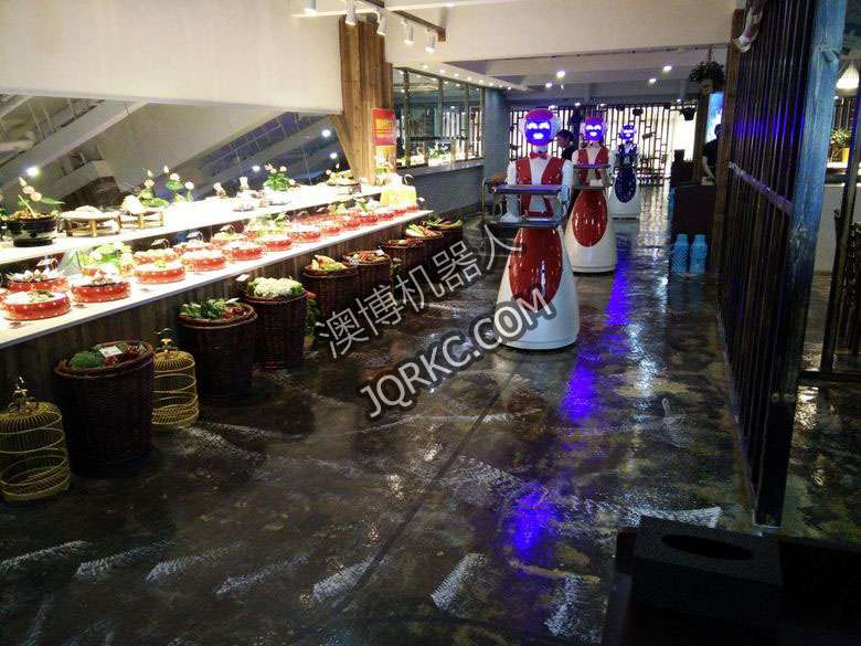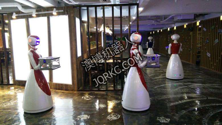 機器人餐廳使用六臺送餐機器人現(xiàn)場
