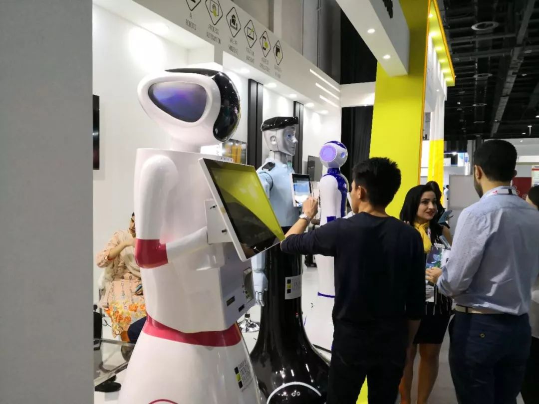 圖為澳博服務(wù)機(jī)器人銀銀在迪拜機(jī)器人展