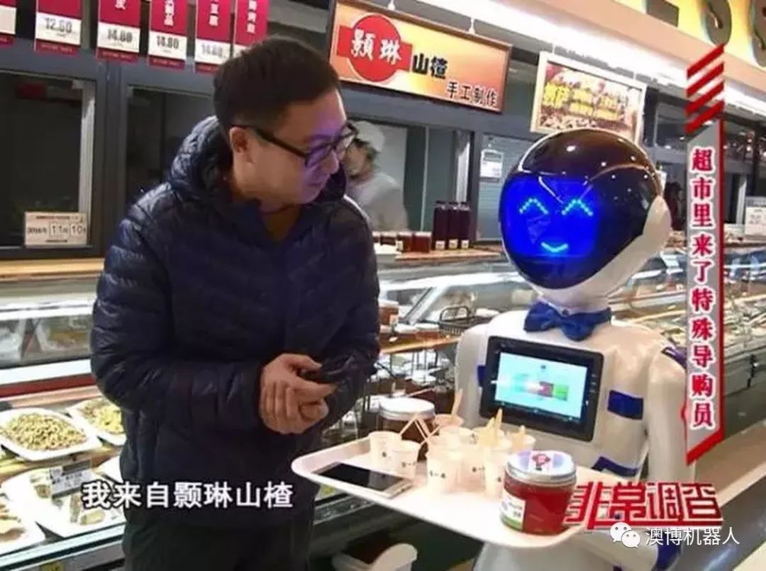 圖為澳博服務(wù)機(jī)器人歡歡在超市使用