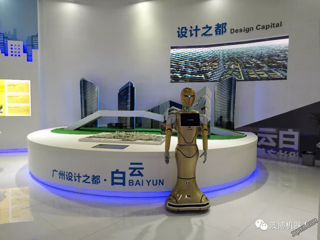 圖為澳博服務(wù)機(jī)器人博士在大堂使用