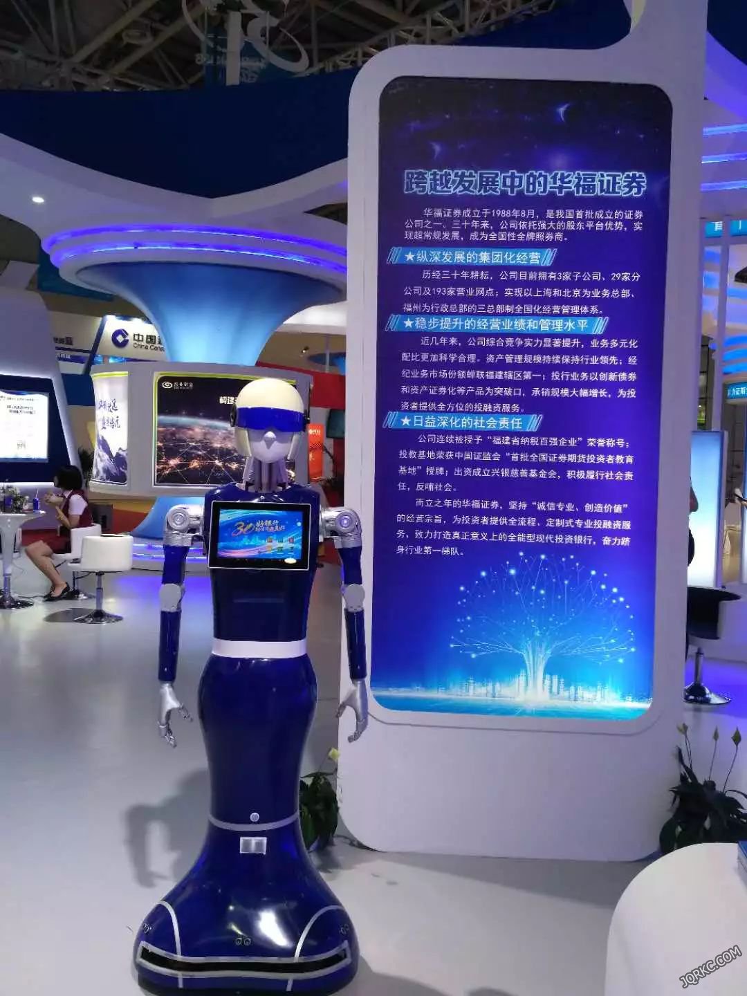 圖為澳博服務(wù)機器人藍豆在銀行講解證券