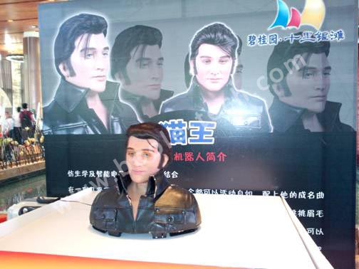 機(jī)器人貓王,這個(gè)智能防真機(jī)器 人更是將仿生學(xué)及智能電子控制真正完美的結(jié)合,很難另人想像,在一副幾乎可以亂真的面孔下,五官居然全都可以活動(dòng)自如,配上他的成名曲,跟著音樂節(jié)拍,眼睛忽閃忽閃,時(shí)而注視你,時(shí)而望向遠(yuǎn)方,挑挑眉毛,搖頭晃腦,仿佛一代巨星復(fù)活,給您開一場(chǎng)專場(chǎng)演唱會(huì),再加上您可以為他量身打造各種造型,可當(dāng)珍藏紀(jì)念,更可以接上你的手機(jī),MP3,把他當(dāng)成一個(gè)桌面人型音響,還可以接上MIC麥克風(fēng)跟他一起高歌一曲,別有一番味道。