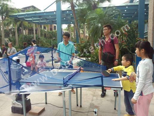 乒乓球機(jī)器人,一款能自動(dòng)發(fā)球的機(jī)器人,通過遙控控制,可調(diào)整發(fā)球的速度以及方向。適合孩子們練習(xí)乒乓球,現(xiàn)場(chǎng)慕名而來的孩子和家長(zhǎng)都紛紛圍住,希望能體驗(yàn)一下機(jī)器人打乒乓球有多厲害!