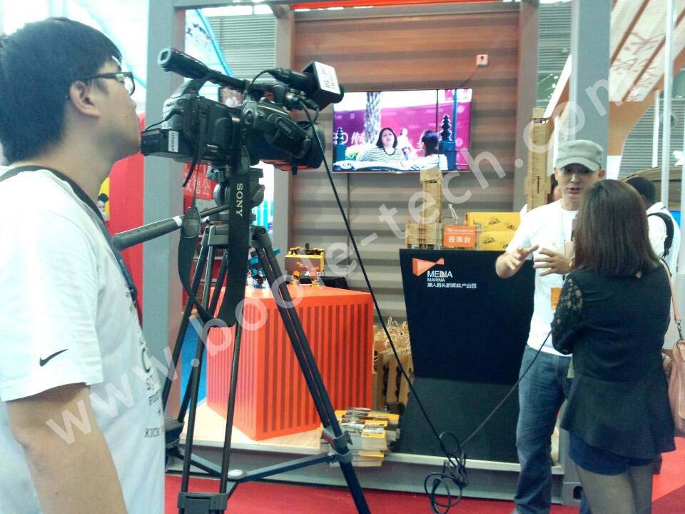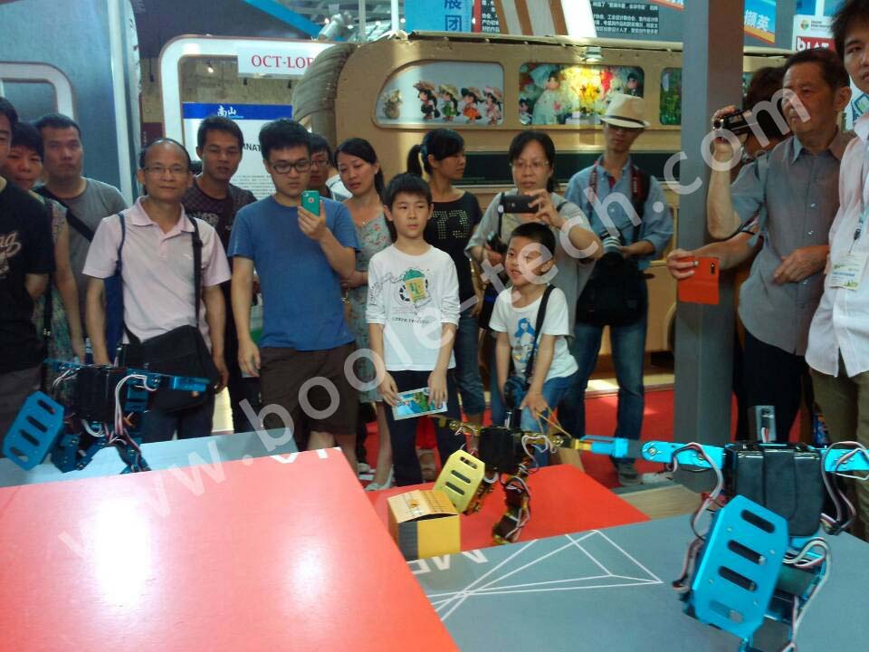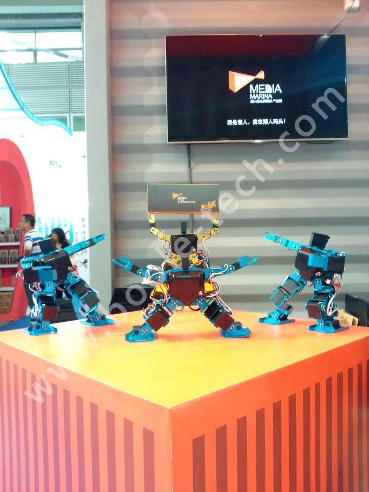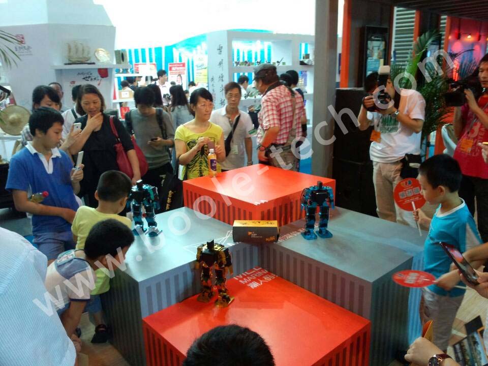 應參展商邀請,我們共推出多款智能機器人,助陣“潮人碼頭”參展商,多臺舞蹈機器人一起跳舞,吸引了現(xiàn)場很多游客圍觀,同時也有不少電視臺記者采訪,“機器人表演”成為了展會中一個亮點。
