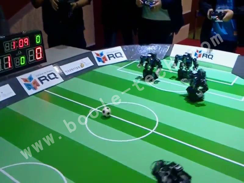 機器人足球比賽是一個互動性很強的環(huán)節(jié),同學(xué)們可以遙控機器人行走、踢球、撲球、甚至跌到了,還會迅速爬起來繼續(xù)作戰(zhàn)!現(xiàn)場不斷傳出一陣陣的歡呼聲。