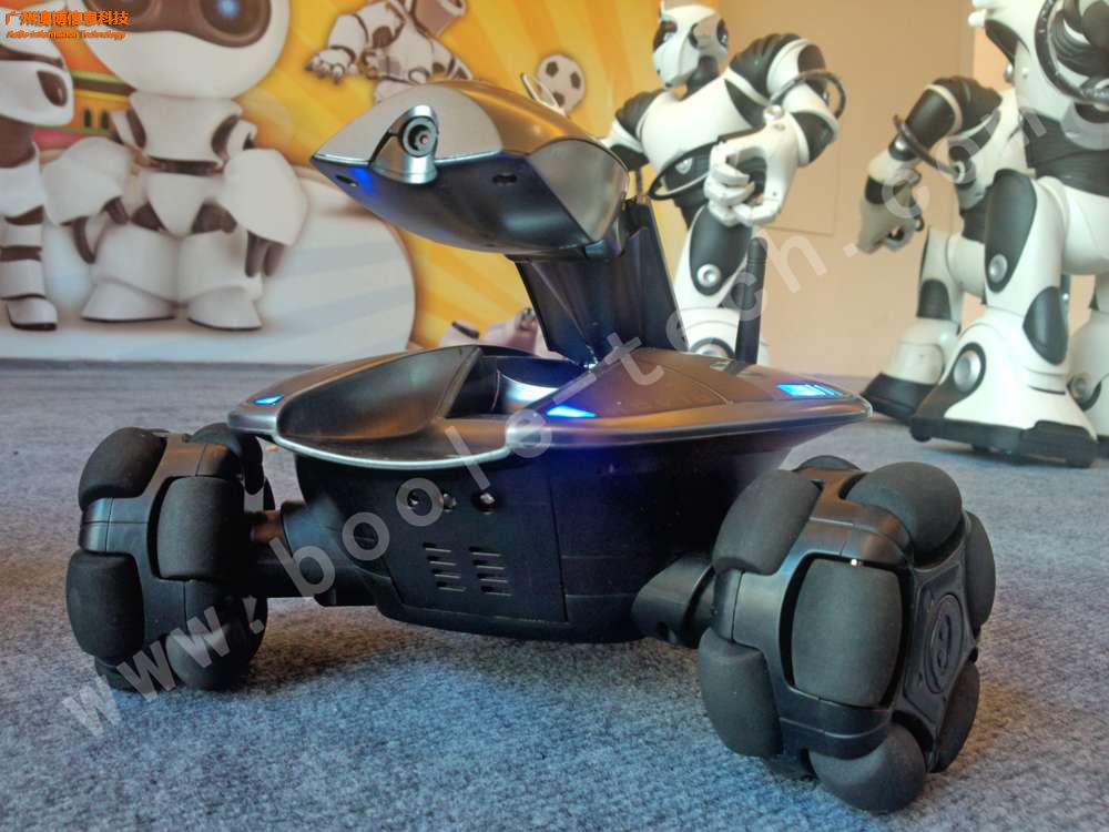 首先出場的是一款外形酷炫的機器人,名字也非???,叫“太空巡警”。頭部有兩只眼睛,發(fā)出藍色的光,好像在看著你!沒錯,它確實在看著你!因為機器人有視覺感應,眼睛能跟著物體移動!