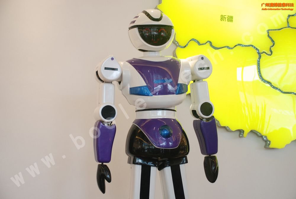 擁有太空夢幻外表,同樣擁有臉部表情顯示,胸前的顯示屏幕能顯示出語音對話的語句,游客們只要對著顯示屏問機(jī)器人相應(yīng)的話語,機(jī)器人就能作出相應(yīng)的回答。
