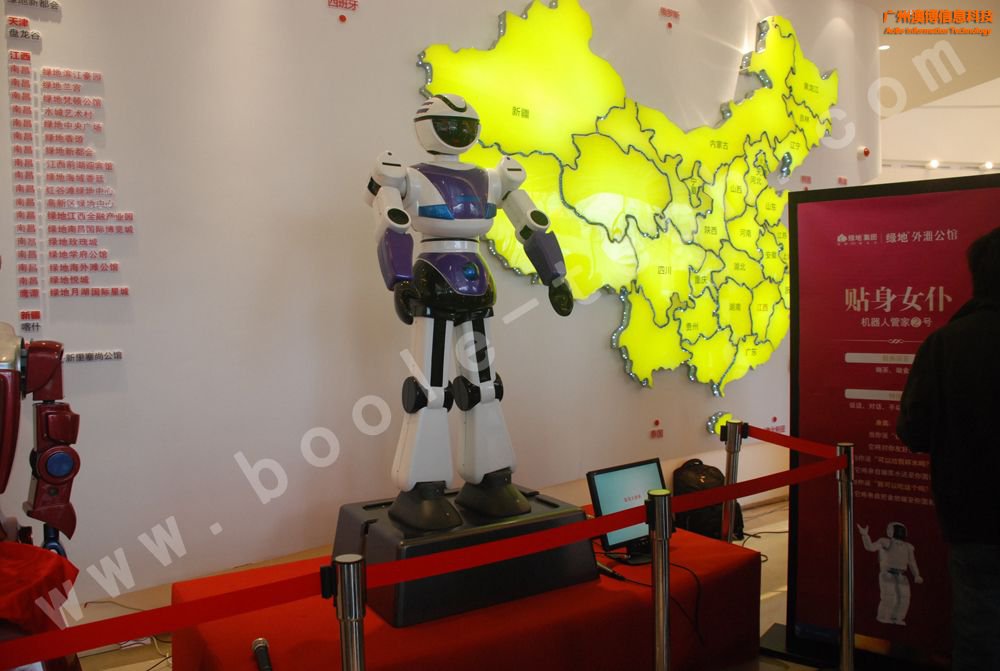 2013年10月20日,由專業(yè)從事機(jī)器人演出領(lǐng)域的“博樂機(jī)器人表演”提供的4位高科技的迎賓機(jī)器人一起見證了南昌綠地外灘公館的對外開放儀式。