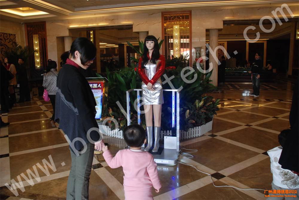 按照標準1.7米人體比例設計,擁有靚麗外表,當游客經(jīng)過的時候,還會鞠躬問候,加上絢麗的LED站臺,讓人眼前一亮。有興趣的朋友還可以拿起麥克風與美女迎賓機器人對話呢!