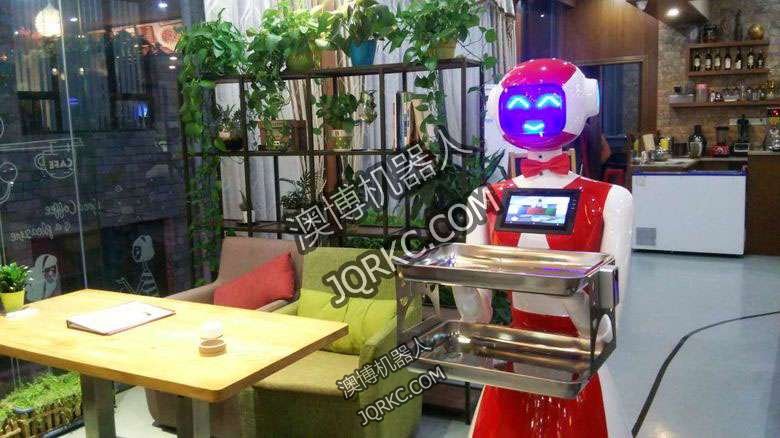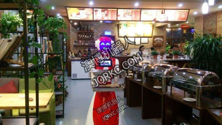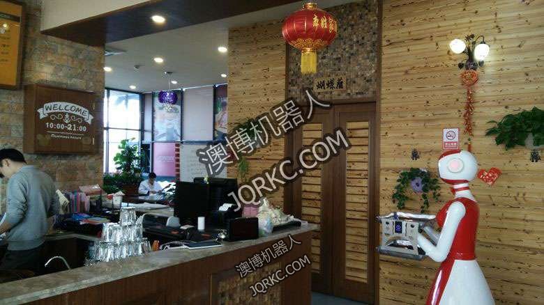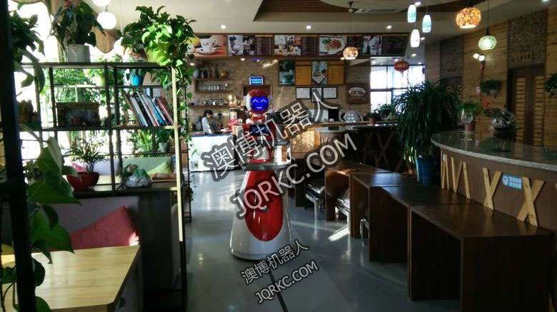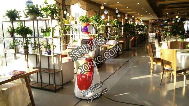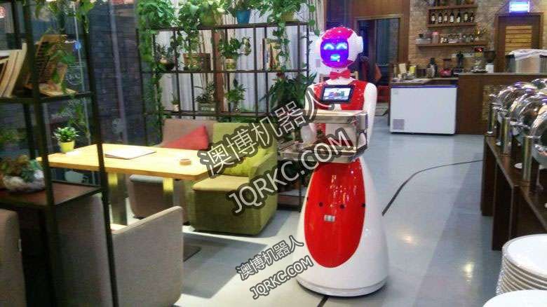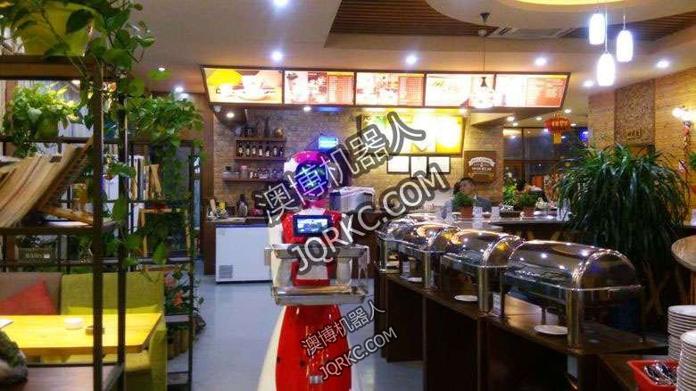 機(jī)器人餐廳使用六臺(tái)送餐機(jī)器人現(xiàn)場(chǎng)