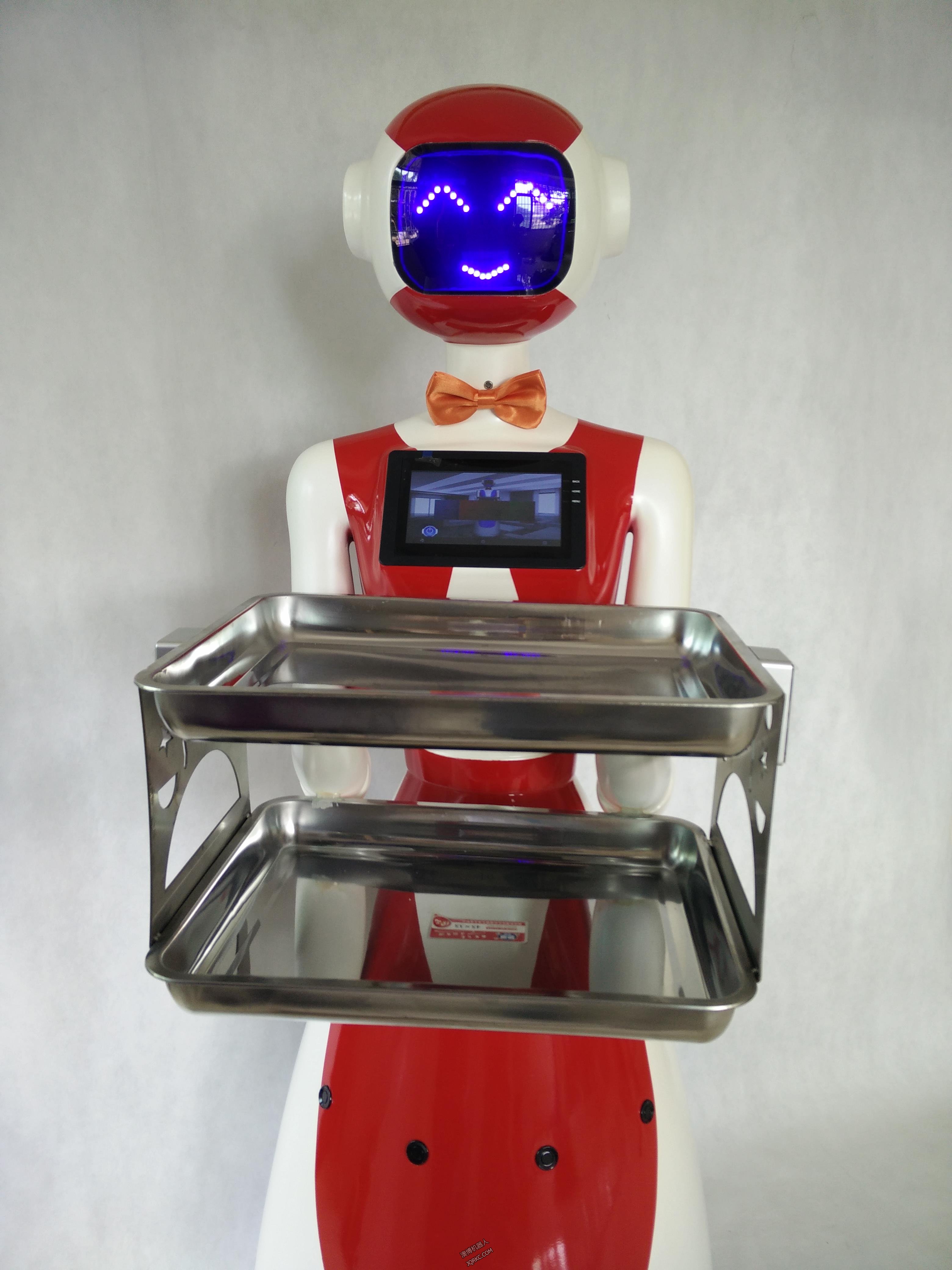 送餐機(jī)器人外殼主要材料有玻璃鋼、亞克力、塑料等。可在餐廳、房地產(chǎn)銷售中心、KTV、酒店、會(huì)所、慶典、婚慶、 晚會(huì)、展會(huì)、商場(chǎng)等場(chǎng)所用來(lái)迎賓、送餐、導(dǎo)購(gòu)、送茶、送鮮花、送傳單、送禮品、送禮品在舞臺(tái)上和主持人互動(dòng)節(jié)目、送婚禮戒指和主持婚禮、頒獎(jiǎng)和主持頒獎(jiǎng)等。